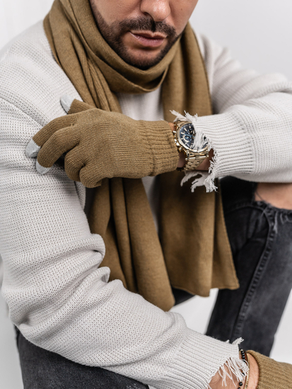 Кафяв мъжки зимен комплект - шапка, шал, ръкавици Bolf 2025007