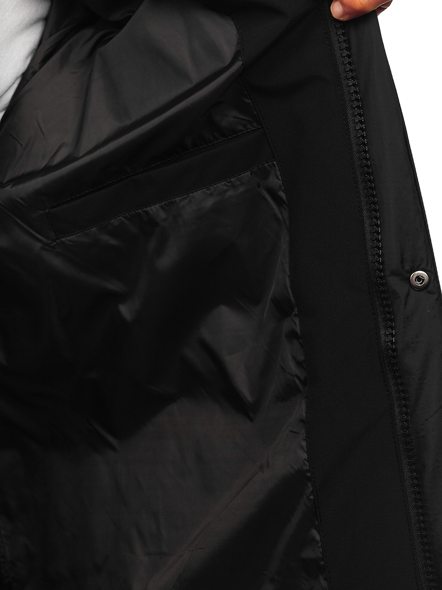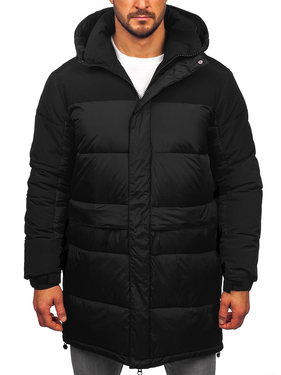 Черно дълго ватирано мъжко зимно яке с качулка Bolf 31M5016