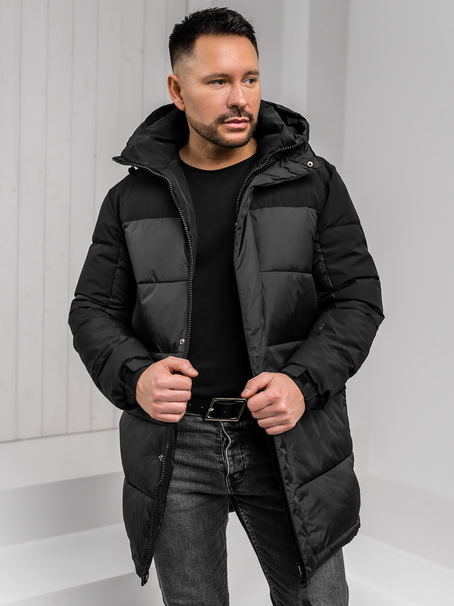 Отзиви и мнения на потребители за Черно дълго ватирано мъжко зимно яке с качулка Bolf 31M5016A1