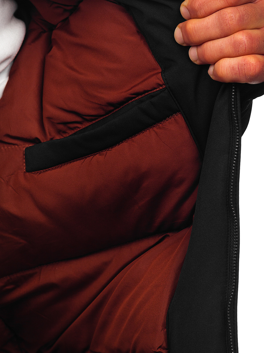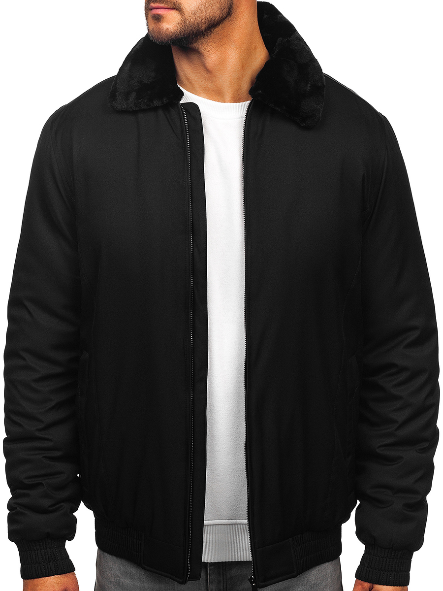 Черно мъжко зимно яке с косъм Bolf 22M335
