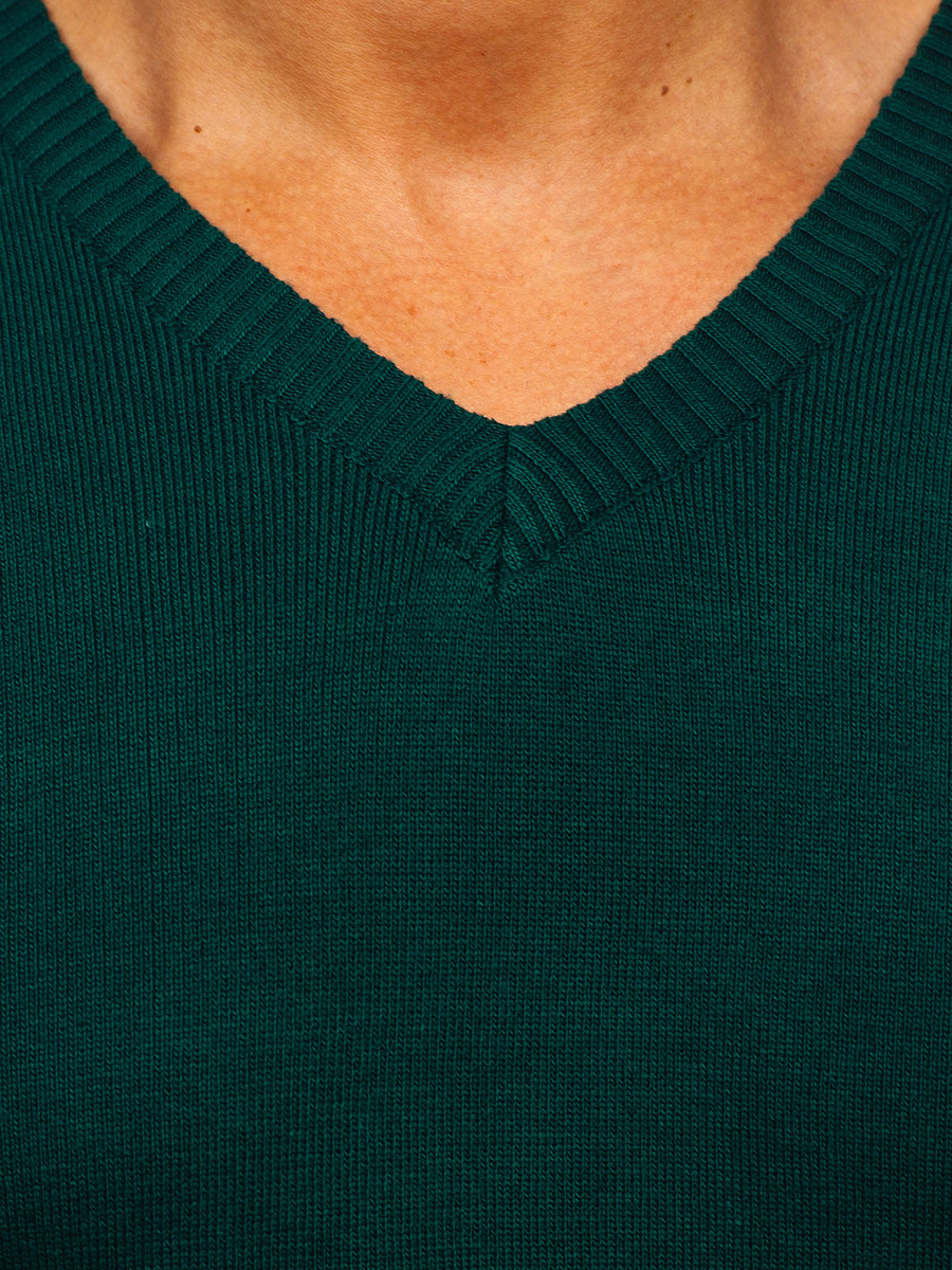 Зелен мъжки пуловер с V-образно деколте Bolf S8725