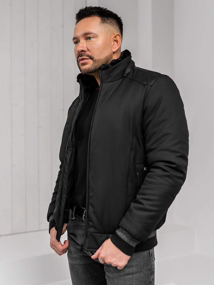 Отзиви и мнения на потребители за Черно мъжко зимно яке с косъм Bolf 22M333A1