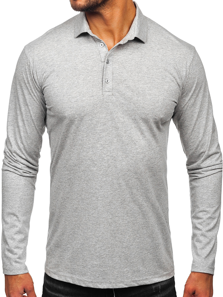 Отзиви и мнения на потребители за Мъжка сива памучна поло тениска с дълъг ръкав Bolf 5119