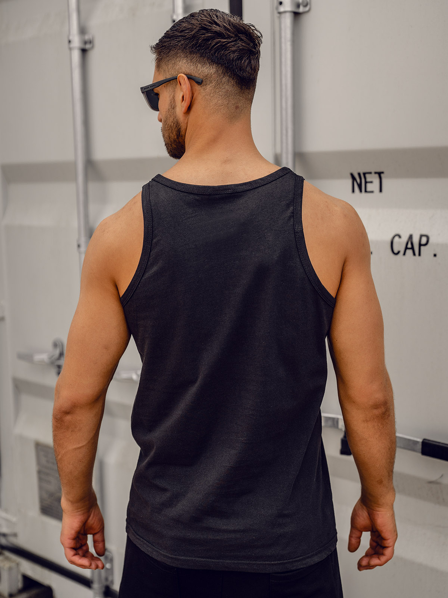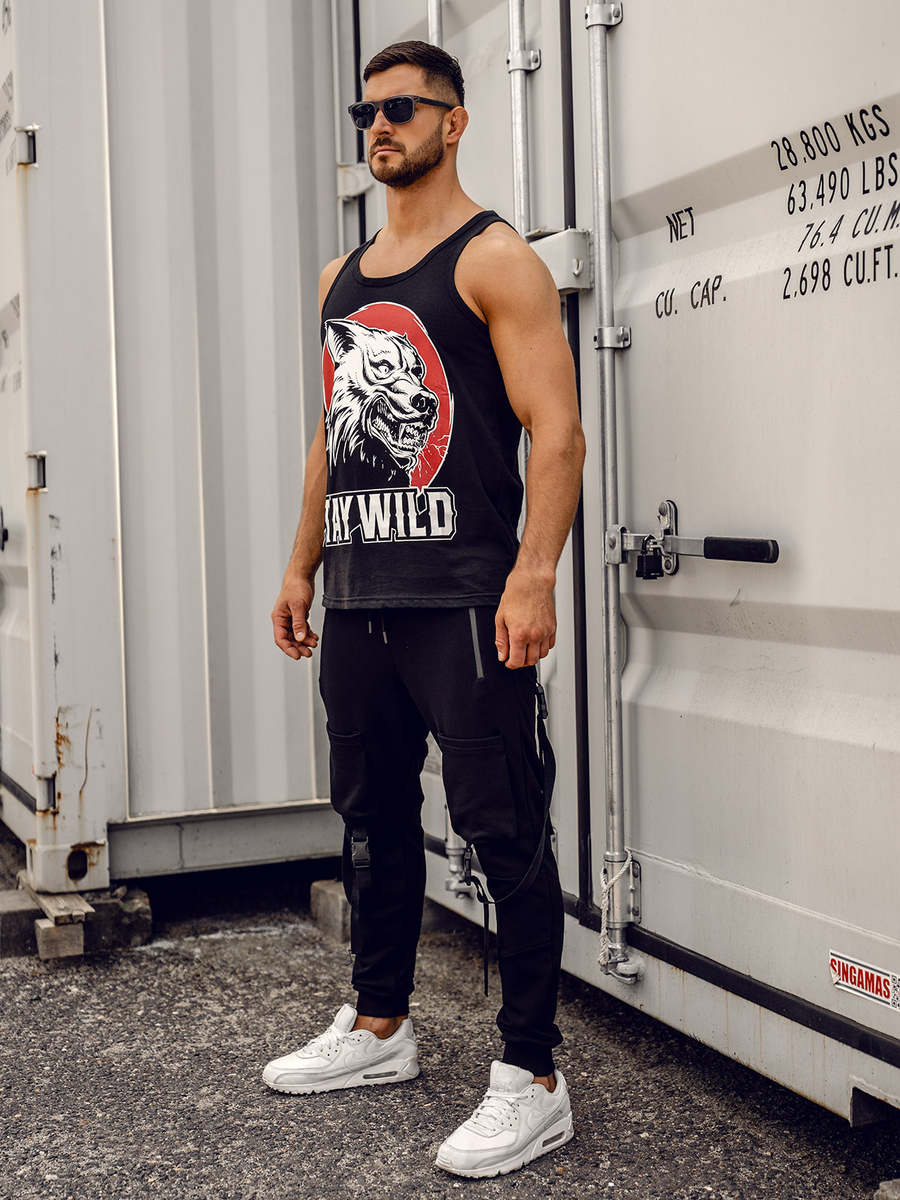 Черният потник с щампа Bolf 143029A е чудесна алтернатива на класическата тениска. Изработен е от най-висококачествен мек и проветрив памук, идеален е за топлите дни и тренировка. Правата му кройка стои идеално на фигурата и осигурява свобода на движенията. Подходящ е за различни стилове – както всекидневни, така и по-спортни. Комбинирай го със суитшърт с цип и панталон slim fit, за създаване на модерен, ежедневен стил.