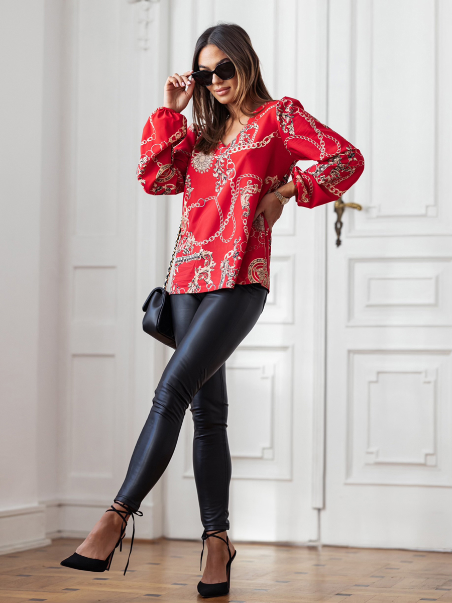 Отзиви и мнения на потребители за Червена дамска шарена блуза с дълъг ръкав Bolf 8207A