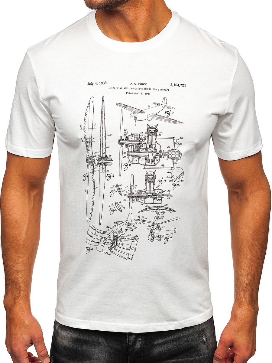 Бяла памучна мъжка тениска с щампа Bolf MPO3538