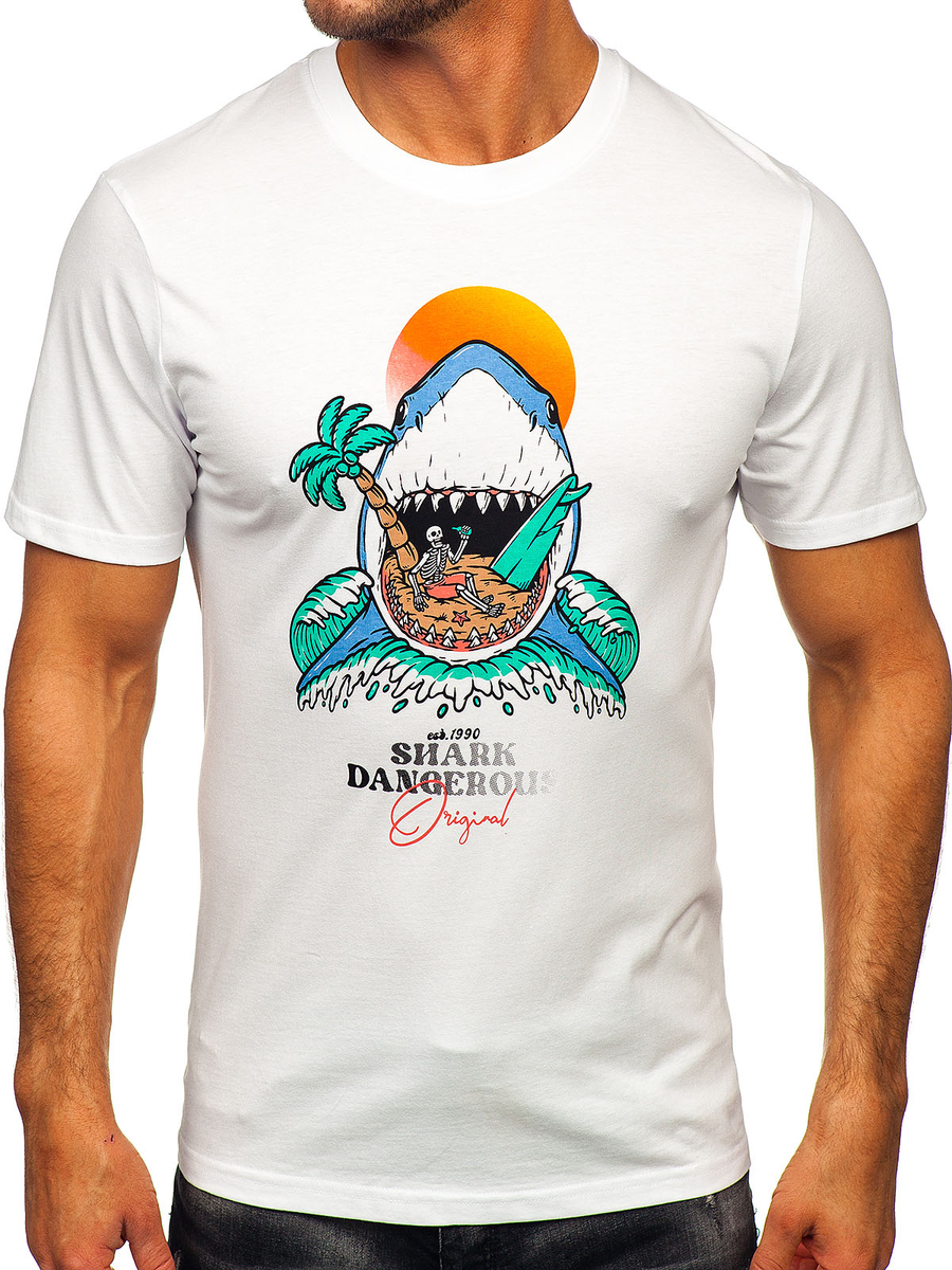 Бяла памучна мъжка тениска с щампа Bolf MPO3460