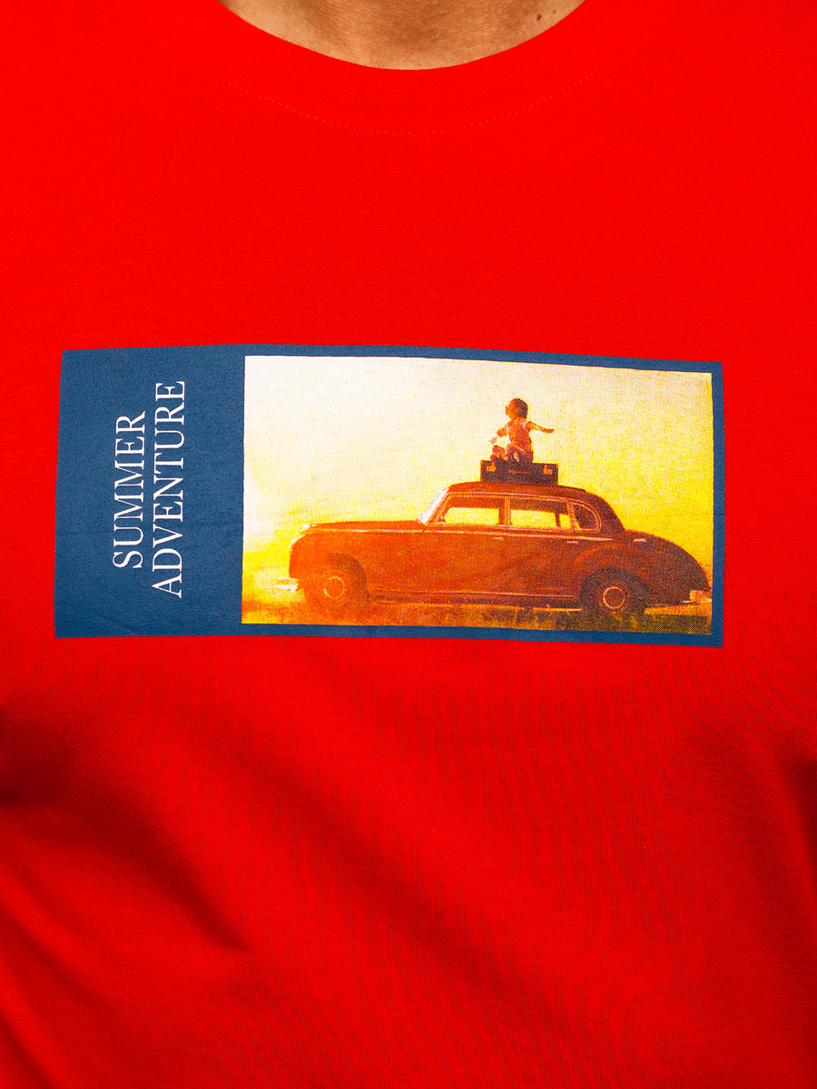 Червена памучна мъжка тениска с щампа Bolf MPO3559