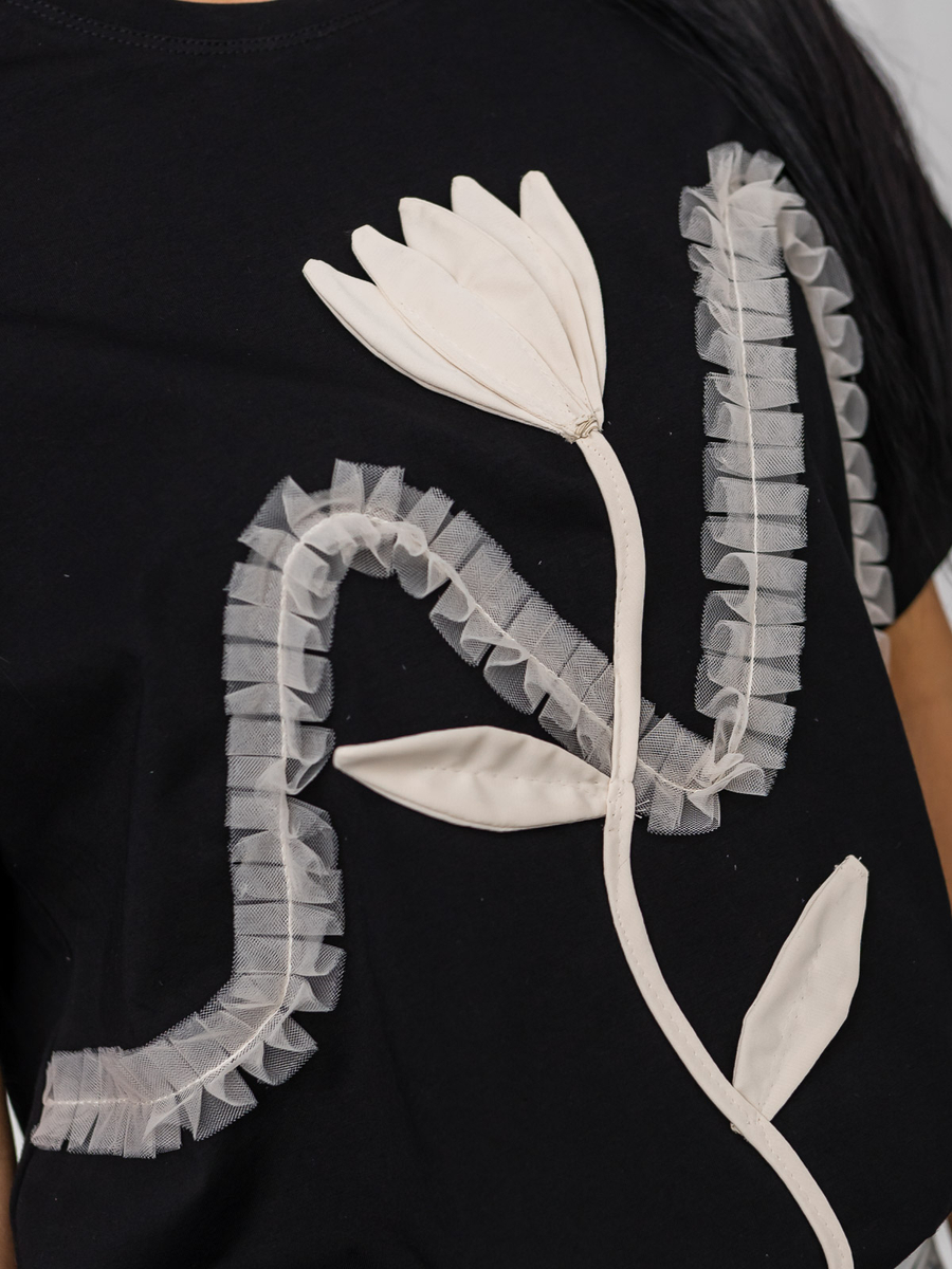 Черна дамска тениска с апликация Bolf 96T632
