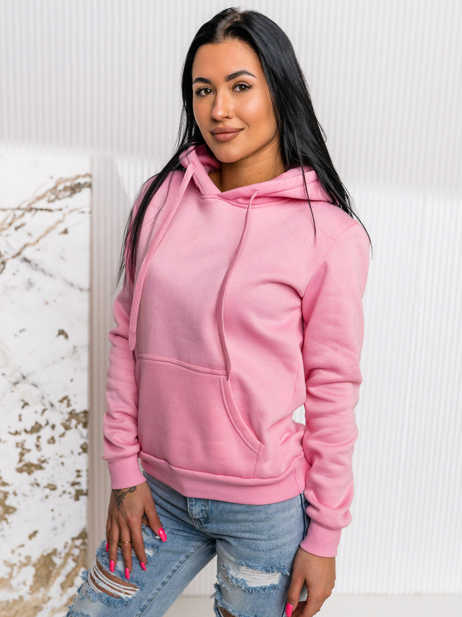 Дамски розов суичър тип кенгуру Bolf W02A1