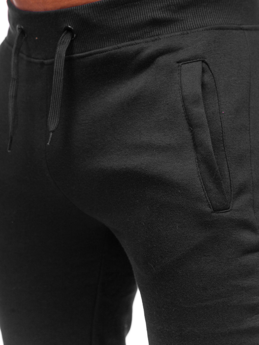 Черният мъжки спортен панталон Bolf XW01-E е спортен панталон с класическа кройка, който се предлага в широка гама от цветове. Долнището се регулира в кръста с широк ластик и връзки, има два странични джоба. Спортен характер му придават простият фасон и завършените с щрик крачоли. Продуктът е изработен от мека, приятна на допир материя, която страхотно се адаптира по тялото.